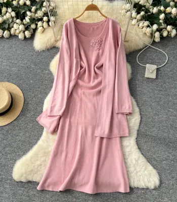Sexy Elegant long sleeve floral Knit Party dress Women evening korean fashion ceremony dresses