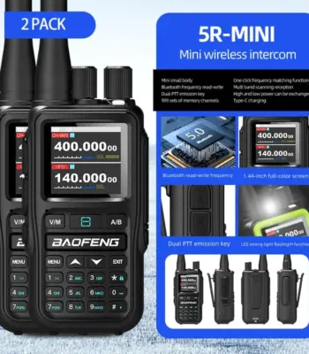 Baofeng UV-5R Mini 5W Walkie Talkie (2 Pack) | Bluetooth APP, NOAA Weather, 999 Ch | USB-C Charging for Outdoor/Hunting