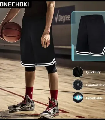 SONECHOKI Knee Length Basketball Shorts Men Striped Loose Running Sport Gym Mesh Breathable Fitness Training Workout Bottom Male