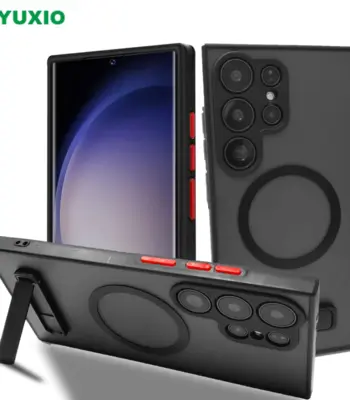 UYUXIO Translucent Magnetic Mobile Phone Case with Kickstand for Samsung Galaxy S25 Ultra S24 S23 FE S22 Plus Slim Stand Cover