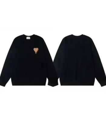 Trendy Brand AM1 Black Gold Furry Embroidered Heart Simple Unisex Sweatshirt Autumn Winter New Arrival Cotton Comfortable Casual