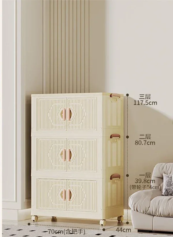 Double Door Open Foldable Storage Cabinet Installation Free Wardrobe Household Large Capacity Grocery Sorting Box Organizer Bins