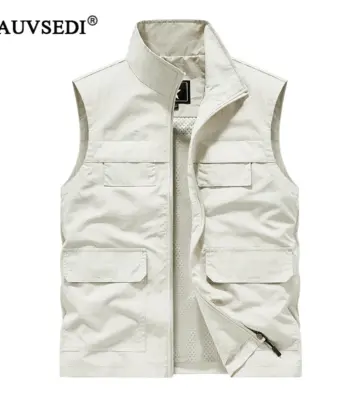 Summer Men Outdoor Cargo Breathable Sleeveless Vests Mens Fish Sport Multi Pocket Vests Coat Man Loose Casual Cardigan Waistcoat