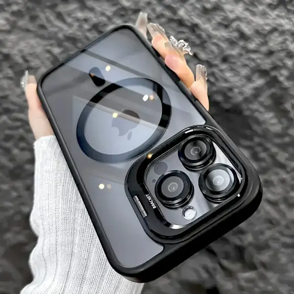 Transparent Case For iPhone 17 Air 16 15 14 13 12 11 Pro Max 16Pro iPhone16 Magsafe Wireless Charge Stand Holder Lens Cover on