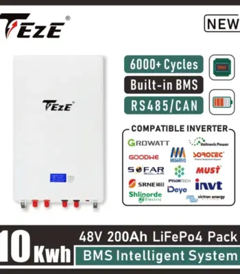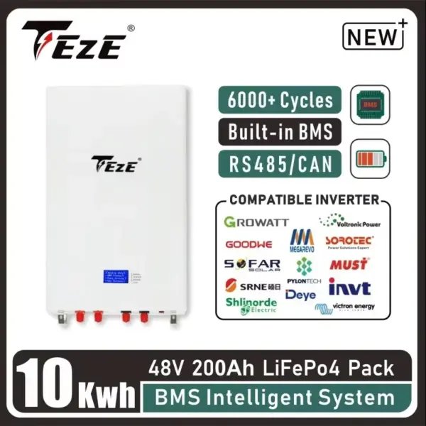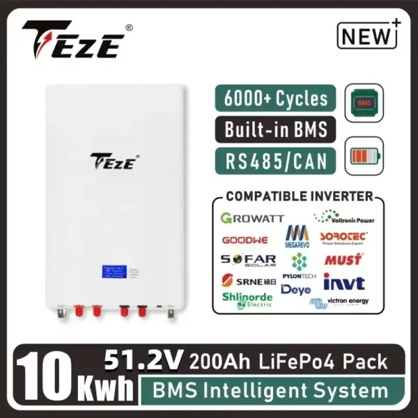 TEZE 10Kwh 48V 200AH LifePo4 Battery PowerWall Built-in BMS CAN RS485 Solar Home Energy Storage System 51.2V Rechargeble Cell