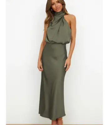 Sexy Off-the-shoulder Halter Sleeveless Satin Dress For Women’s New Summer Elegant Cinched-waist Female Banquet Dresses 2025