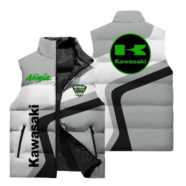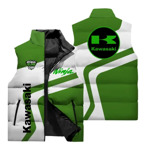 New Kawasaki Cycling Vest and Kawasaki Logo 3D Digital Printed Jacket, Kawasaki Motorcycle Cycling Stand Up Collar Zipper Jacket