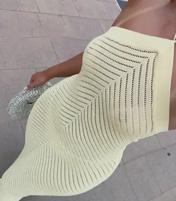 Weird Puss Sexy Crochet Dress Women Vacation See Through Sleeveless Backless Skinny Stretch Beach Midnight Elegant Maxi Bodycon