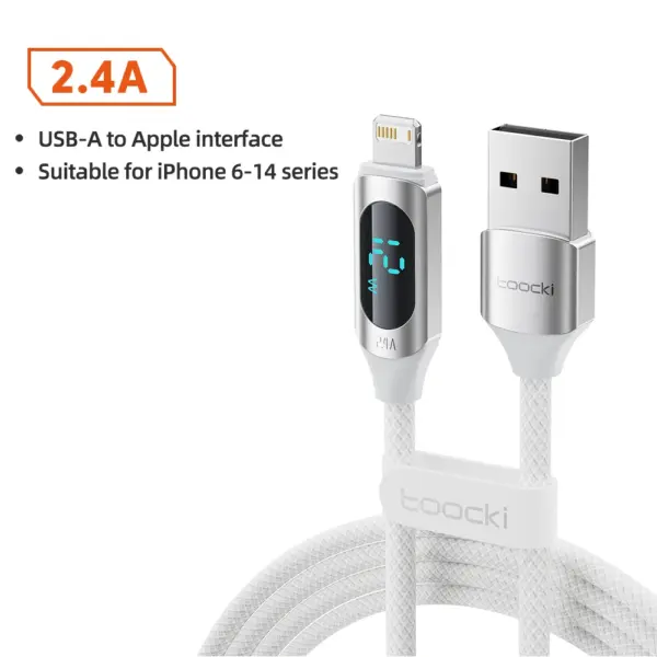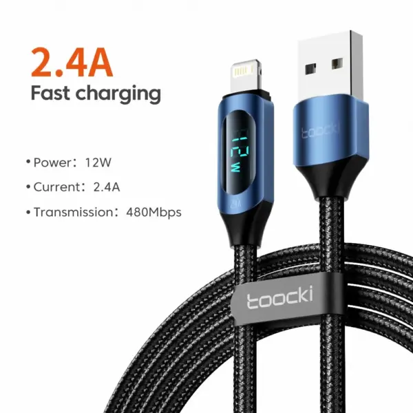 Toocki LED Display USB Cable For iPhone 14 13 12 11 Pro Max Fast Charger Charging Lightning 2.4A USB Wire Cord X XR 8 7 1m 2m