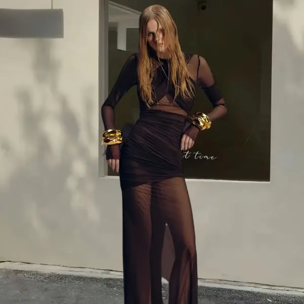 Elegant Mesh Patchwork Long Dresses Bodycon Package Hip Party Club Evening Dress Sexy Double Layer Perspective Vestidos Clothing