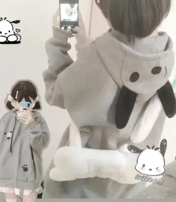 Anime Sanrioed Pochacco Cardigan Hoodie Thicken Ear Hooded Zip Jacket Kawaii Cotton Spring Autumn Sweet Loose Student Girls