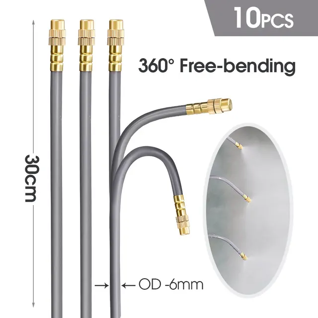 20/30/50cm 360° Free-bend Brass Misting Nozzle for 6/8/10/12mm PE Hose Adjustable Atomization Sprayer Garden Irrigation Watering