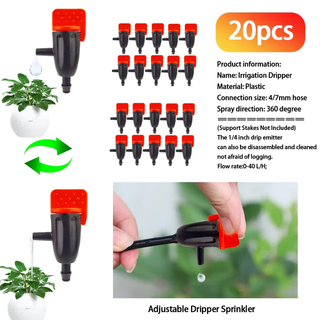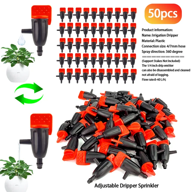 20/50Pcs Adjustable Garden Irrigation Dripper Sprinkler for 4mm/7mm Hose for Home Succulents Plants Lawn Flower Irrigation