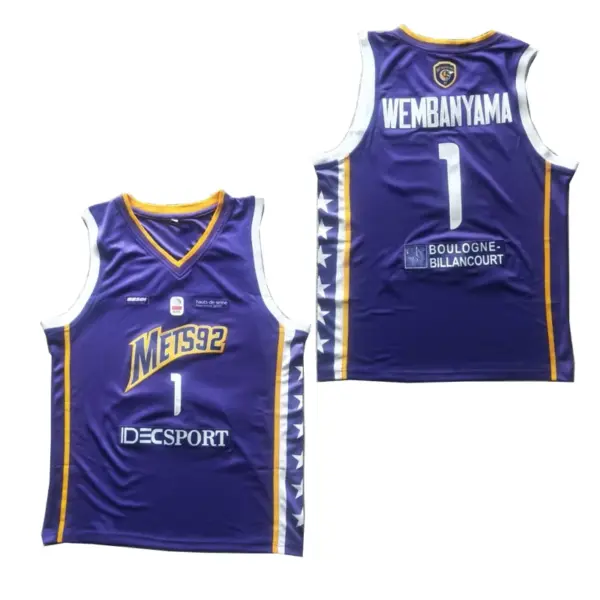 2024 Basketball jerseys Mete 92 1 Wembanyama Sewing embroidery Outdoor sportswear Hip hop culture Sweat absorption big size