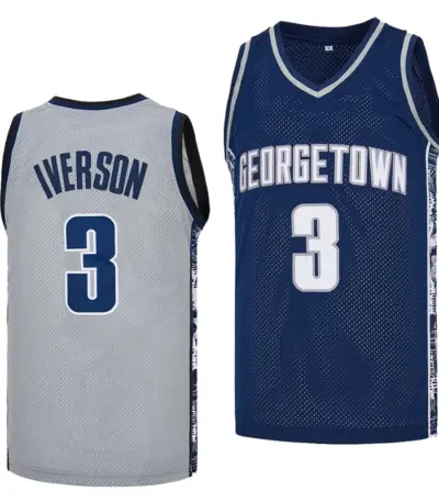 2024 Basketball jerseys GEORGETOWN 3 IVERSON Sewing embroidery Outdoor sportswear Hip hop Sweat absorption breathable grey blue