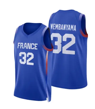 2024 Basketball jerseys FRANCE 32 WEMBANYAMA Sewing embroidery Outdoor sportswear Hip hop culture blue white Sweat absorption