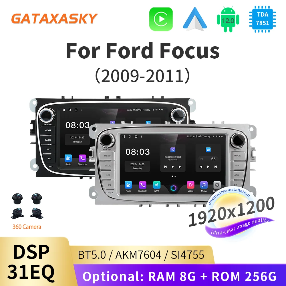 GATAXASKY 7” For Ford Focus 2 S-Max 2009-2011 Car Android Auto Radio Multimedia Carplay Player WIFI Gps Navigation
