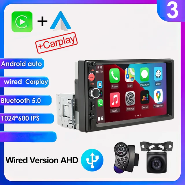 2 Din Car Radio Androidauto Stereo Carplay Android Auto Car Audio 7″ IPS 1024*600 USB/SD BT Automotive Multimedia Player 2Din