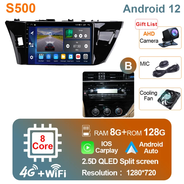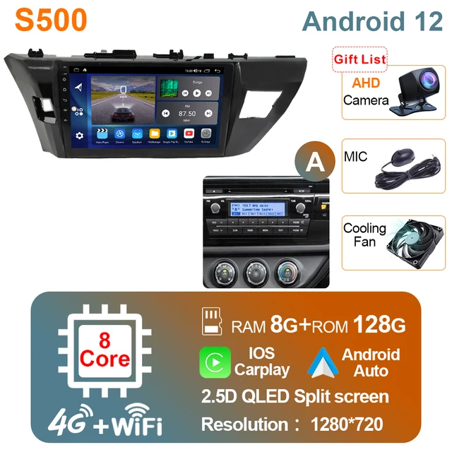 2 Din Car Radio Android 12 Carplay For Toyota Corolla 2014 2015 2016 Multimedia PlayeR Autoradio GPS Navigation Head Unit DSP 4G