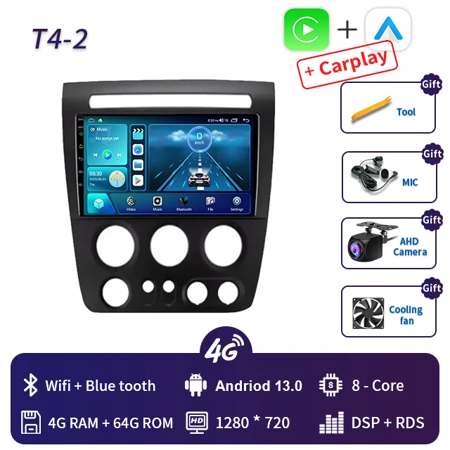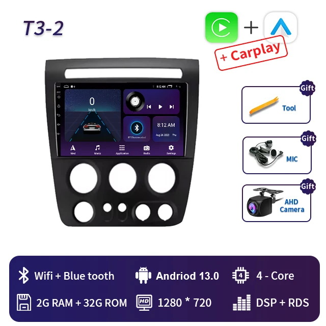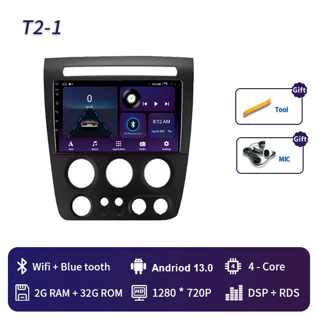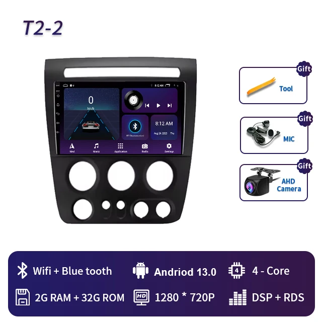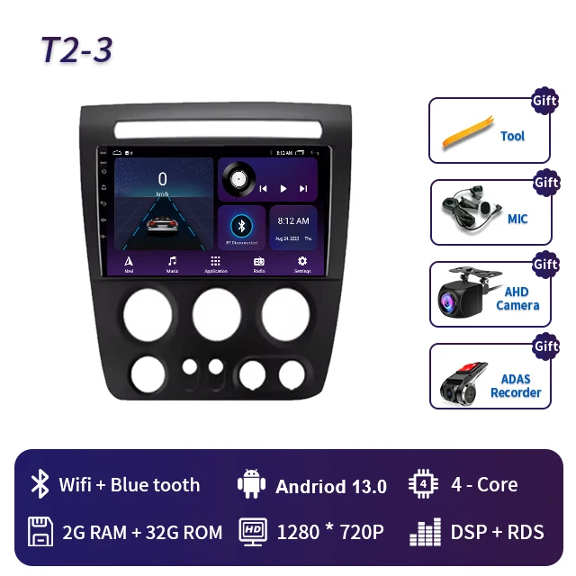 2 Din Android13 For Hummer H3 1 2005 – 2010 Car Radio Multimedia Video Player GPS Navigation Stereo QLED Screen DVD 4G Head Unit