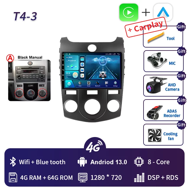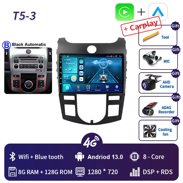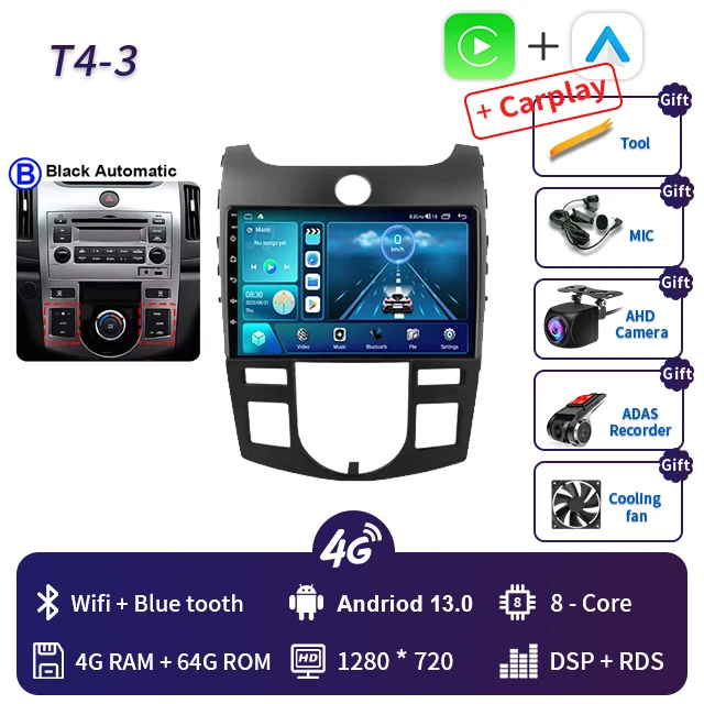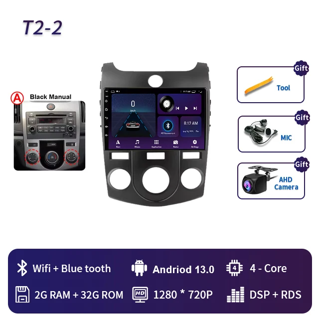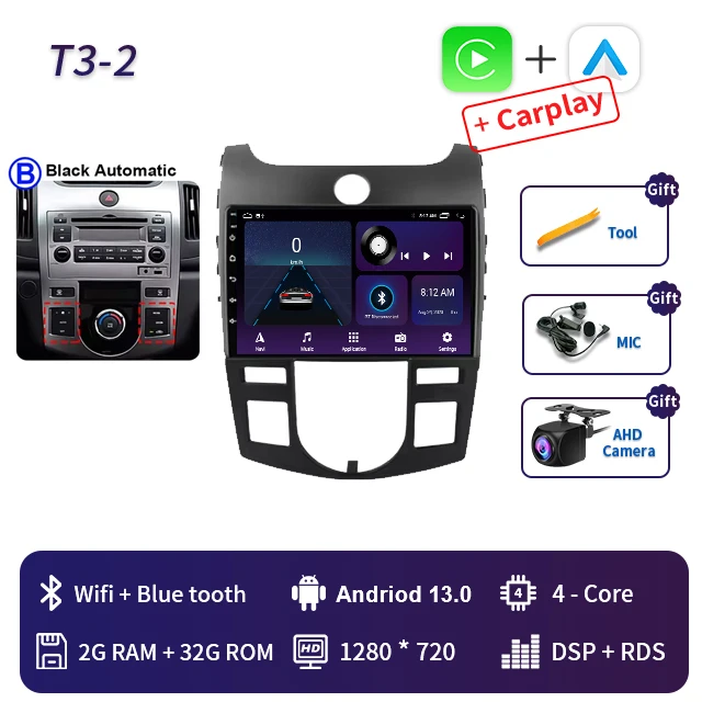 2Din Android13 auto Car Radio Multimedia Video Player For KIA Forte Cerato 2 TD 2008-2013 Carplay GPS Qled Stereo 8Core Dsp WIFI