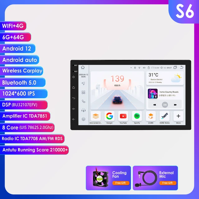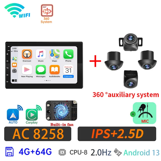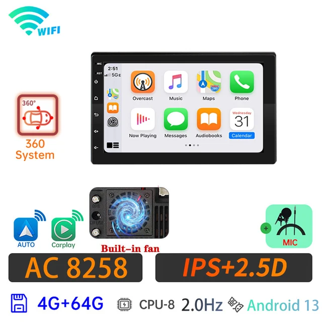 7 inches Android 13 Car Radio Video 2 din Audio GPS Navigation Screen Multimedia Player Universal Carplay 5G WIFI 8Core BT 2 Din