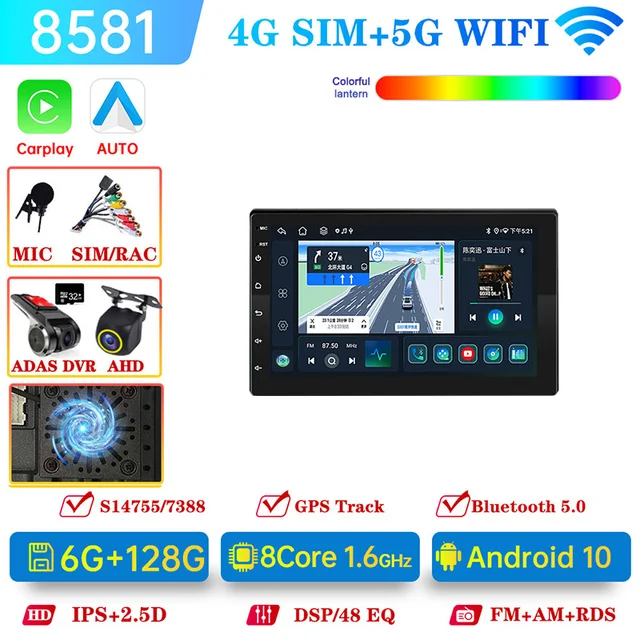 7/9/10 inches Android 13 Car Radio Video CarPlay 2din 4cores GPS wifi Navigation Screen Multimedia Player Universal Audio 2G+32G