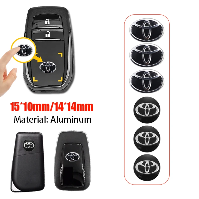 14mm 15mm 5/10Pcs Car Key Stickers Aluminum Logo Decal For Toyota Corolla Yaris Aygo Prius CHR Camry Auris Avensis Land Cruiser