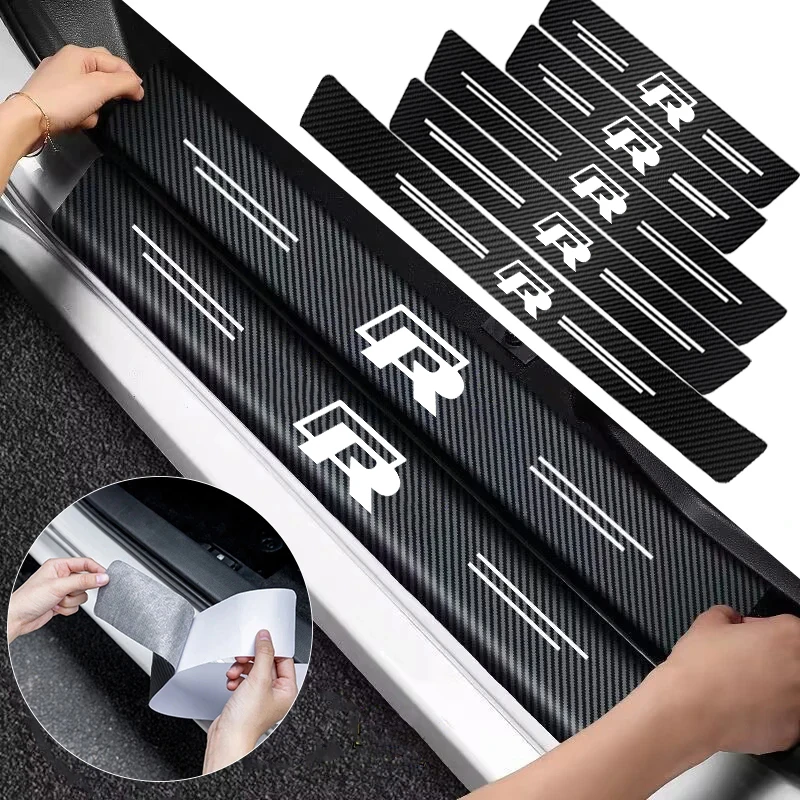 1/4/5Pcs Car Door Sill Scuff Plate Decor Carbon Fiber Stickers For Volkswagen R Touareg Tiguan Passat Golf Polo CC T-ROC Arteon