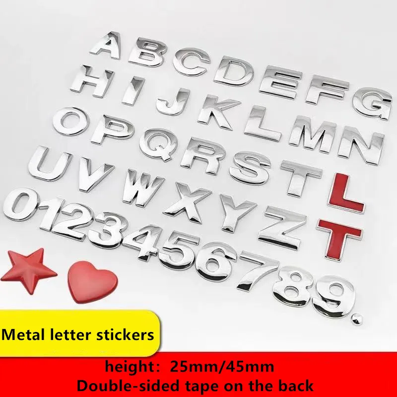 $9.981Pcs 3D Metal 45mm 25mm DIY Letters Alphabet Emblem Numbers Chrome Labeling Car Sticker Digital Badge Accessories Motorcycle