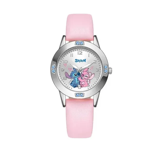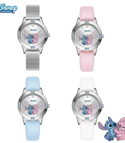 Disney Anime Cartoon Children Angie Stitch Kids Boys Girls Diamond Quartz Watches for Primary School Studen Steel Watch Gift