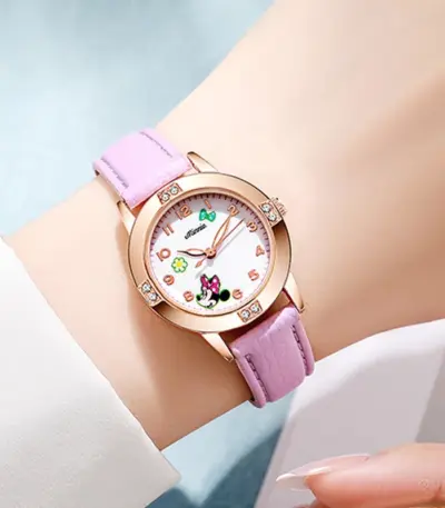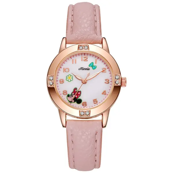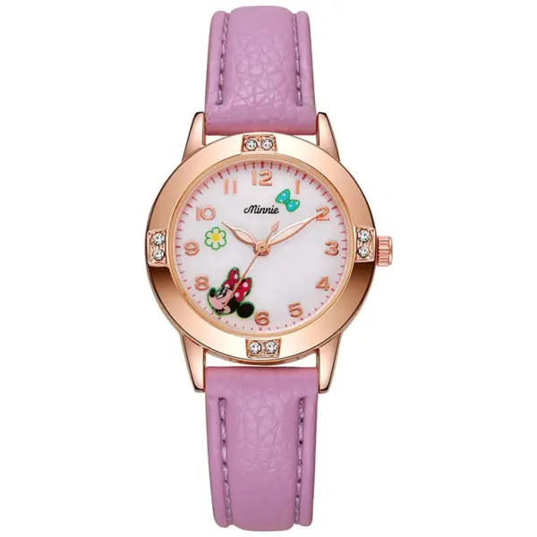 Disney Children’s Watches Kids Boys Girls Cute Cartoon Minnie Imitation Diamond Wristwatch Belt Student Quartz Watch Gift