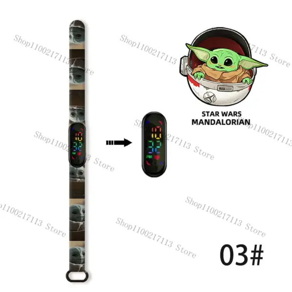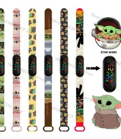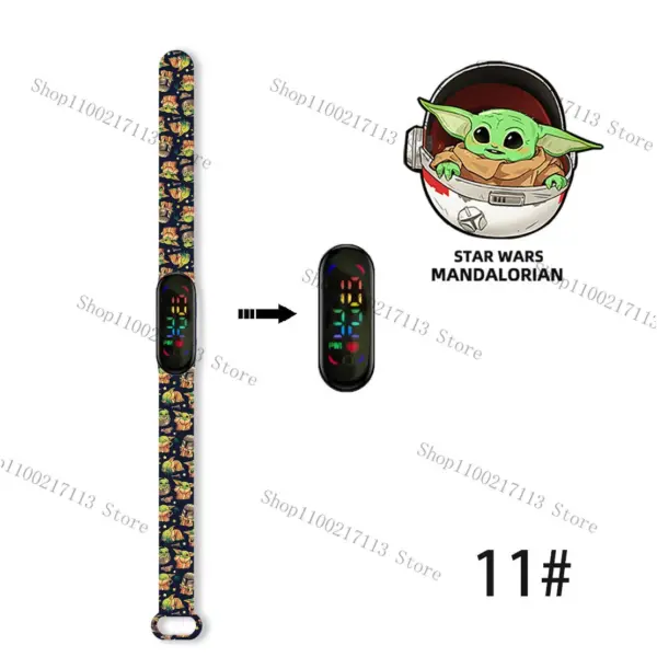 Disney children’s Watch Cartoon Anime figure print baby yoda Luminous Bracelet Watch LED Touch Waterproof Sports kids watch