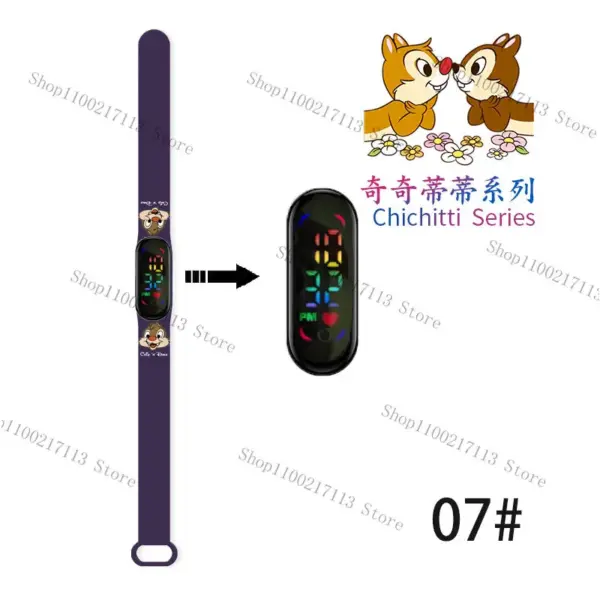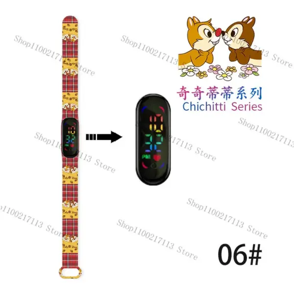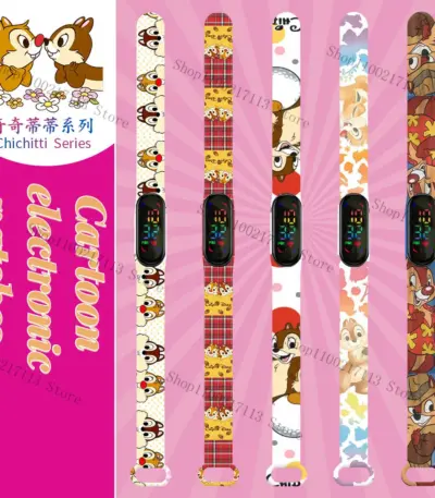Disney Chichitti Children’s Watches Anime figure Chip Dale Print LED Electronic Waterproof Sports Bracelet kids Watches gifts