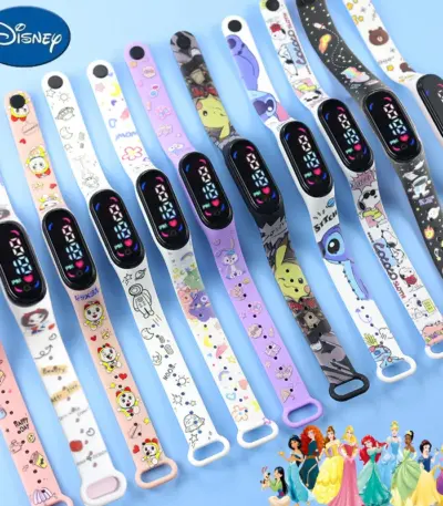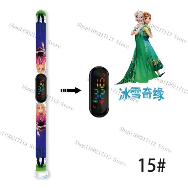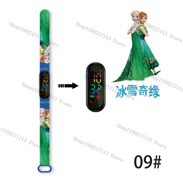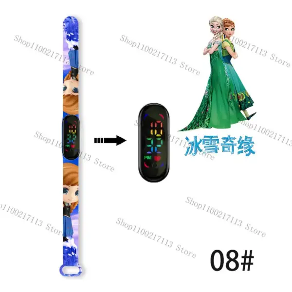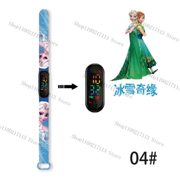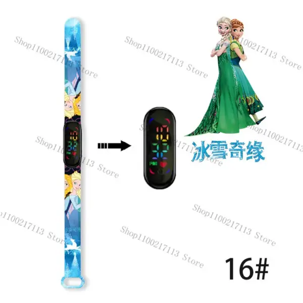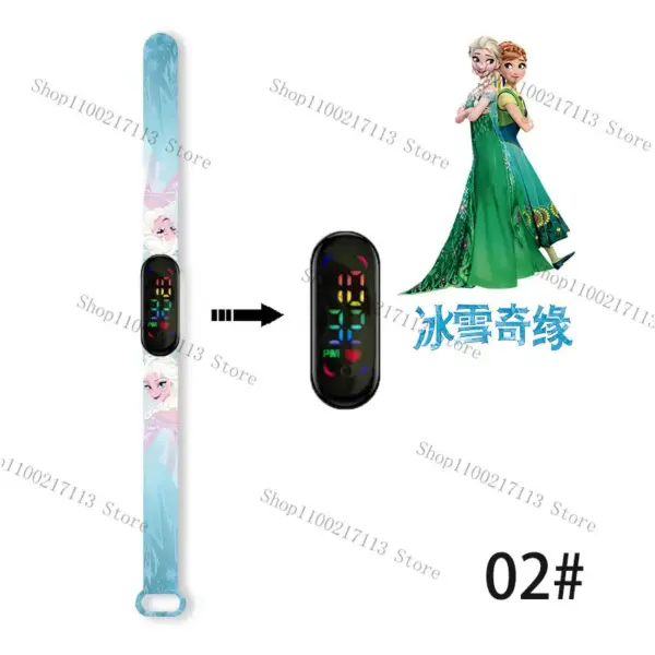 Disney Frozen Mickey Minnie Spiderman Children’s Anime Figure Bracelet Wristwatch Cartoon Electronic LED Touch Student Toys Gift