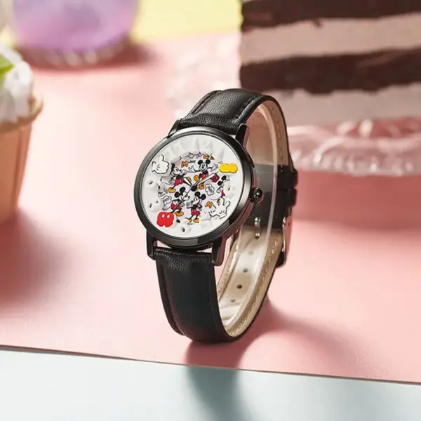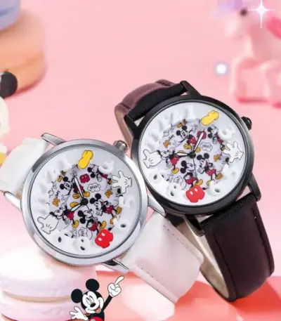 Disney Boys Fashion Cartoon Watch Cute Kids Mickey Mouse Watches Children Boys Girls Pu Leather Quartz WristWatch Clock Gift