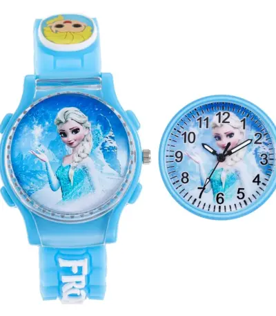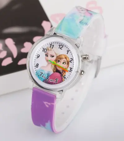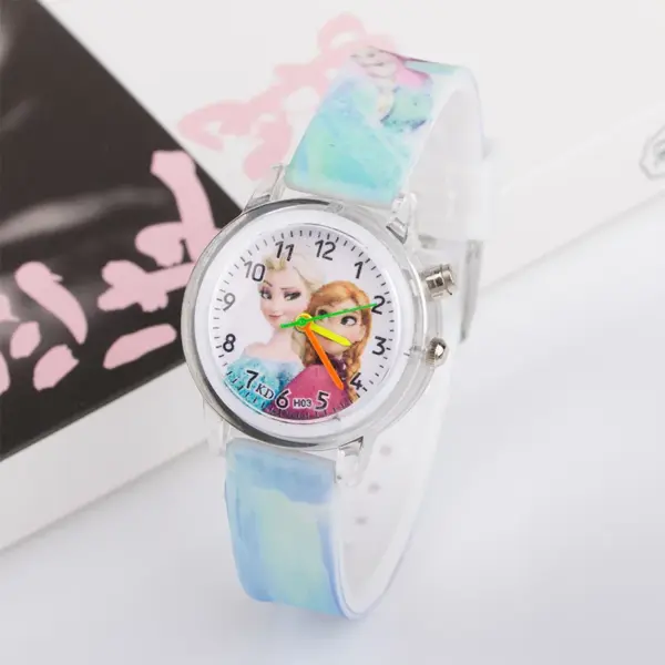 Disney Frozen Princess Elsa Children Cartoon Watches Spiderman Colorful Led Light Boys Watch Girls KidsGift Clock Wristwatch