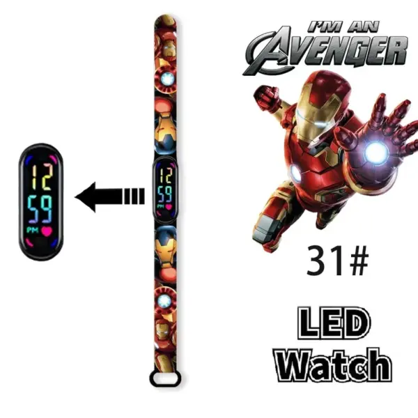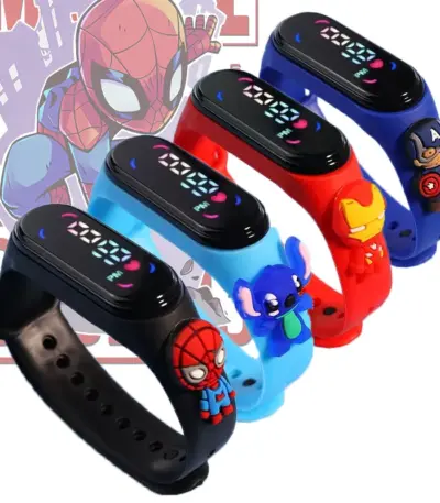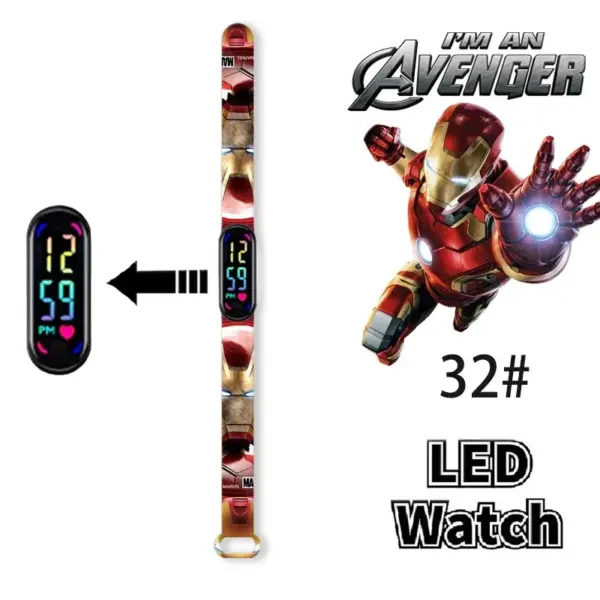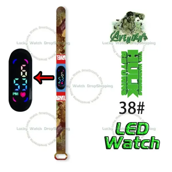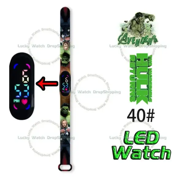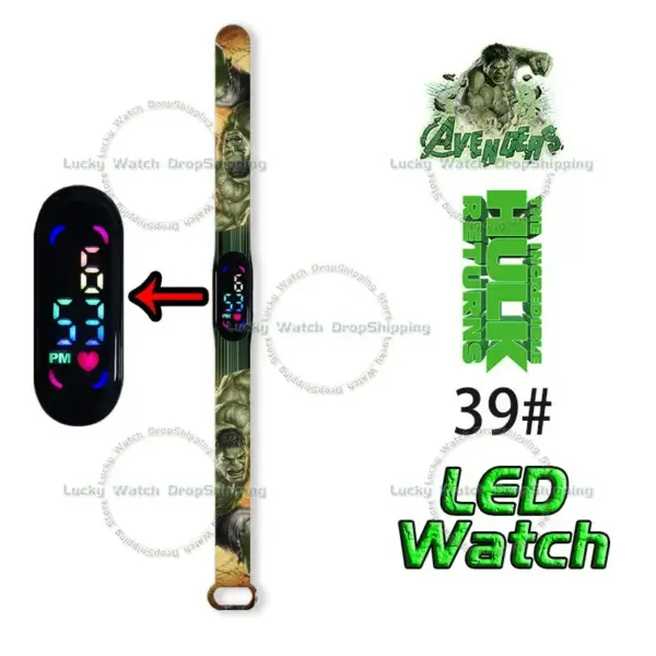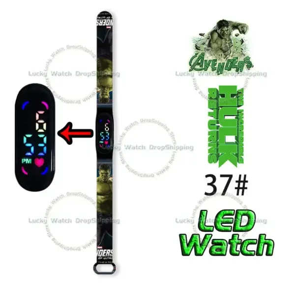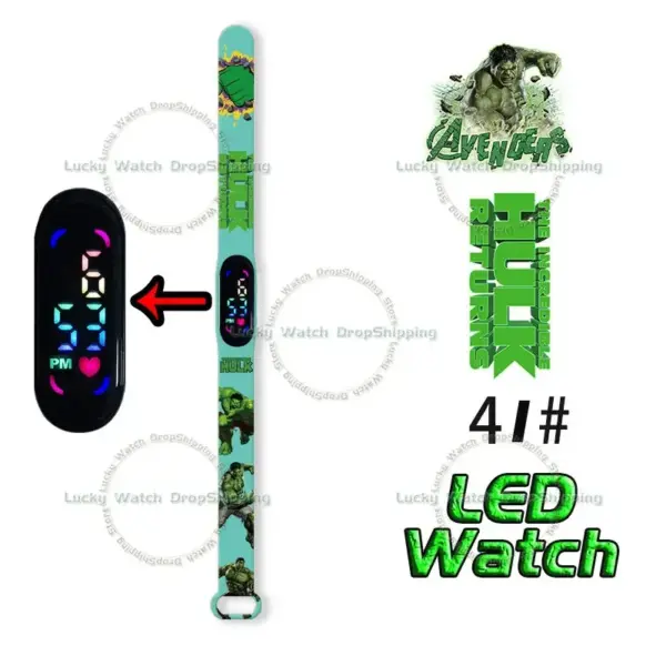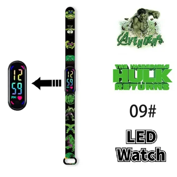 Disney Frozen Spiderman Iron Man Hulk Children’s Anime Figure Bracelet Wristwatch Cartoon Electronic LED Touch Student Toys Gift