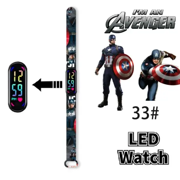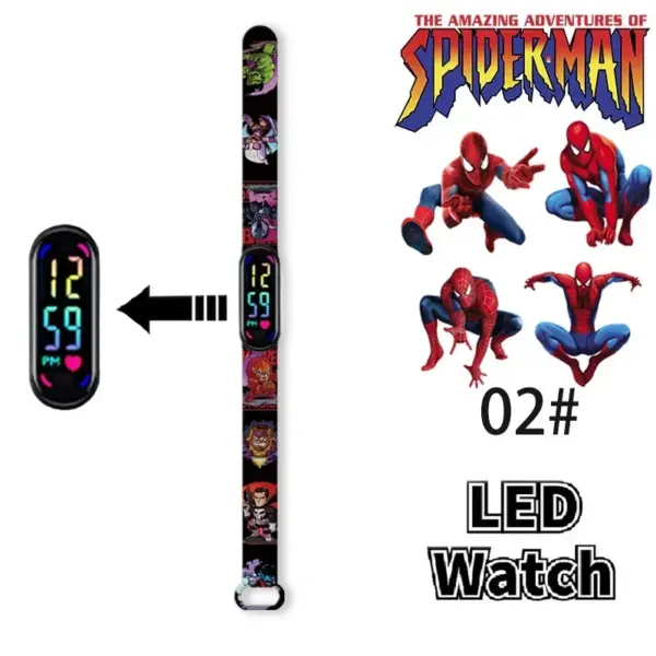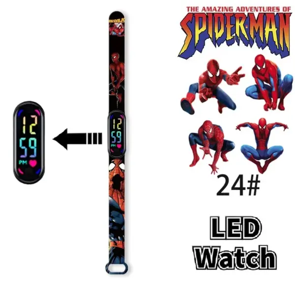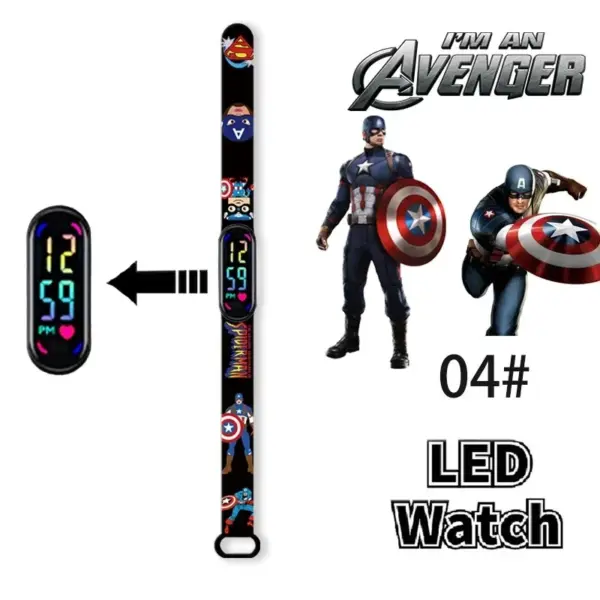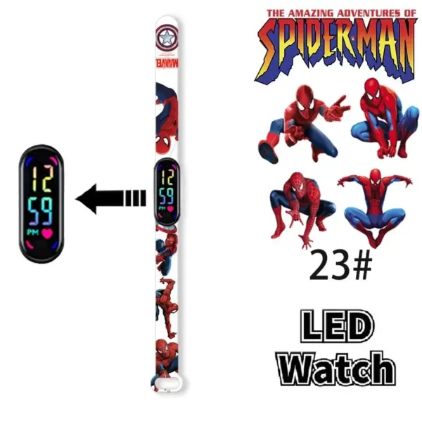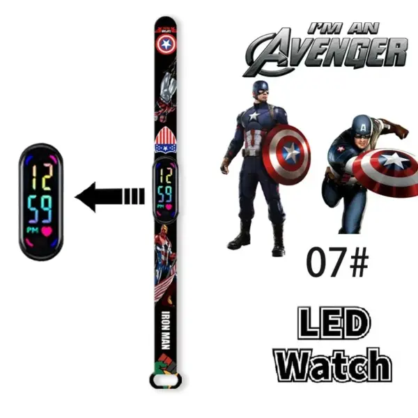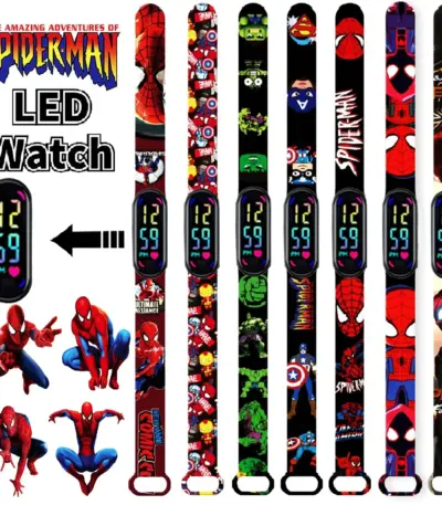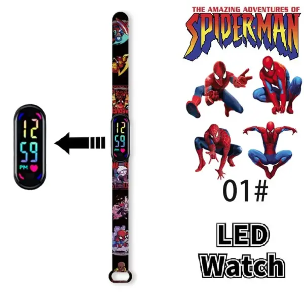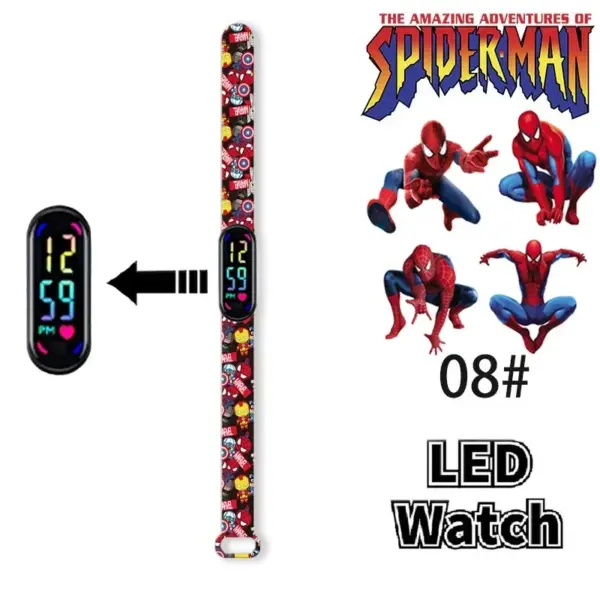 Disney Frozen Spiderman Iron Man Hulk Children’s Anime Figure Bracelet Wristwatch Cartoon Electronic LED Touch Student Toys Gift