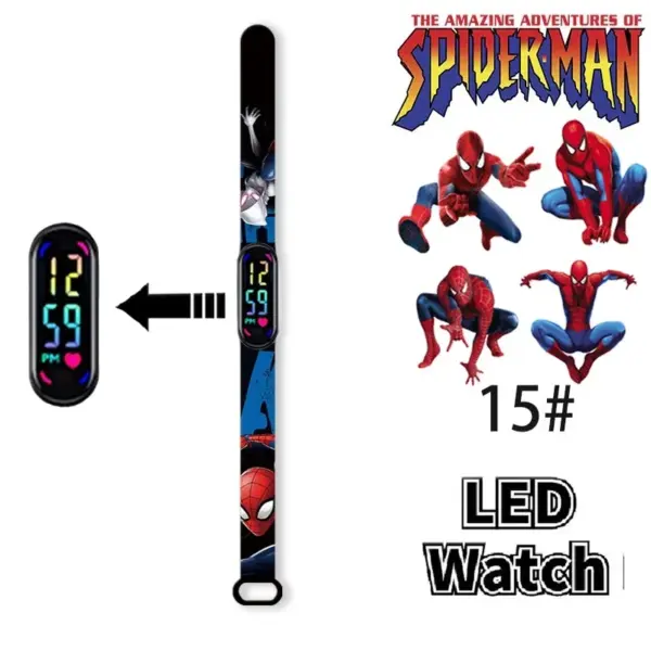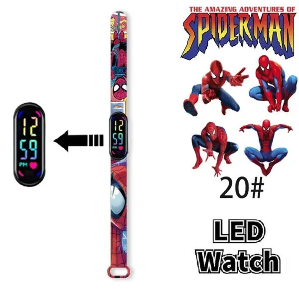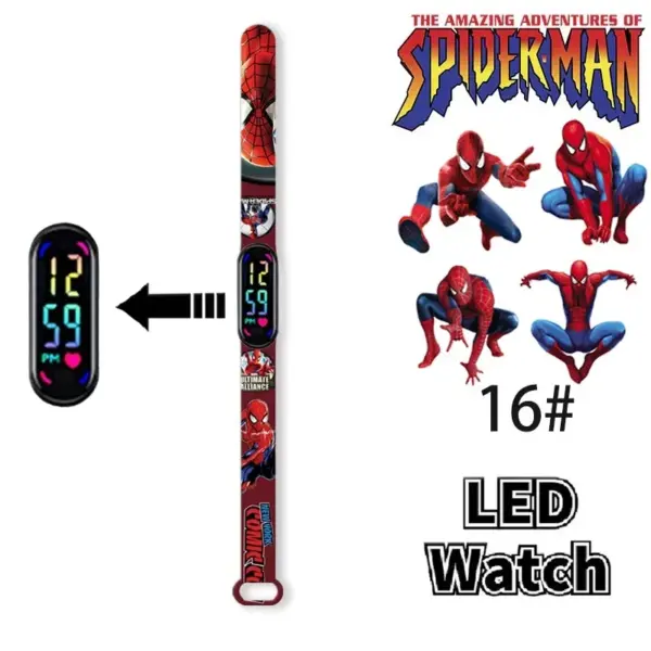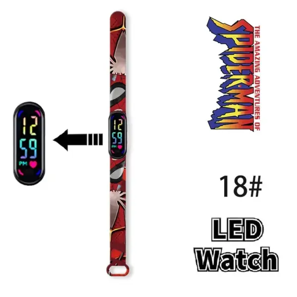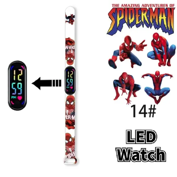 Disney Frozen Mickey Minnie Spiderman Children’s Anime Figure Bracelet Wristwatch Cartoon Electronic LED Touch Student Toys Gift