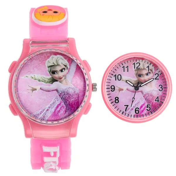 Disney Mickey Children Watches Girls Color Light Source Silicone Princess Elsa Kids Watch Boys Gift Clock Wrist