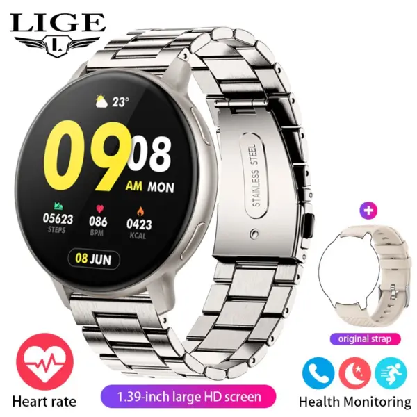 LIGE 2025 Smart Watch Women Bluetooth Call Custom Dials Watches Blood Oxygen Monitor Sport Men Smartwatch Ladies For Android IOS