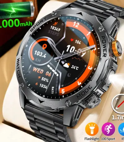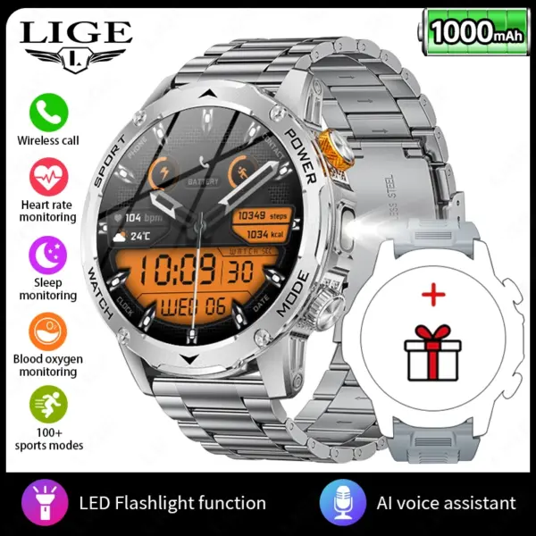 LIGE 2025 New For HUAWEI Xiaomi 1000mah AMOLED Smart Watch Men Sports Fitness LED Flashlight 3ATM Waterproof BT Call Smartwatch
