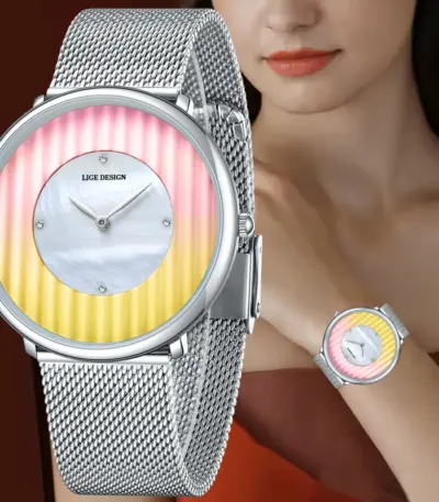 LIGE Creative Gradient Dial Watch Women Fashion Waterproof Women’s Quartz Wristwatches Top Brand Luxury Women’s Bracelet Watch