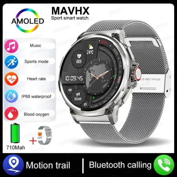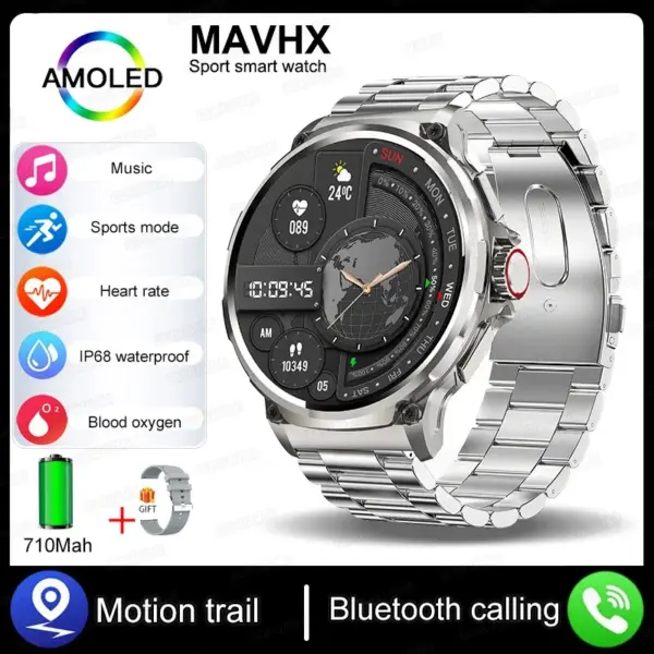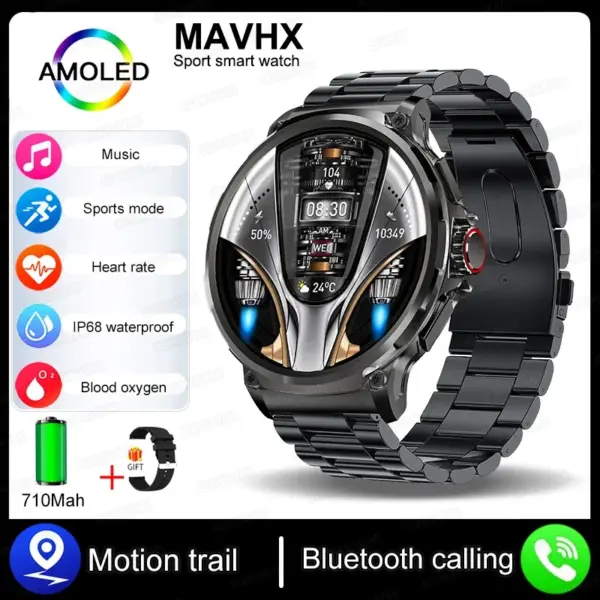 2025 New 1.85-Inch Ultra HD Smart Watch Men GPS Track Bluetooth Call 710 mAh Large Battery 400+Dial Smartwatch For Huawei Xiaomi