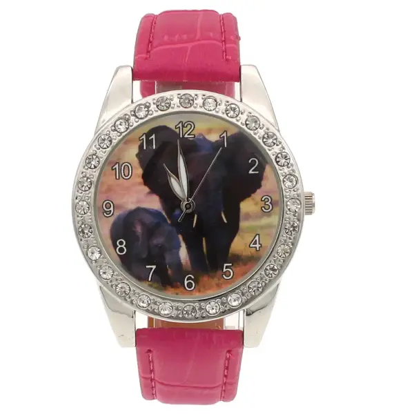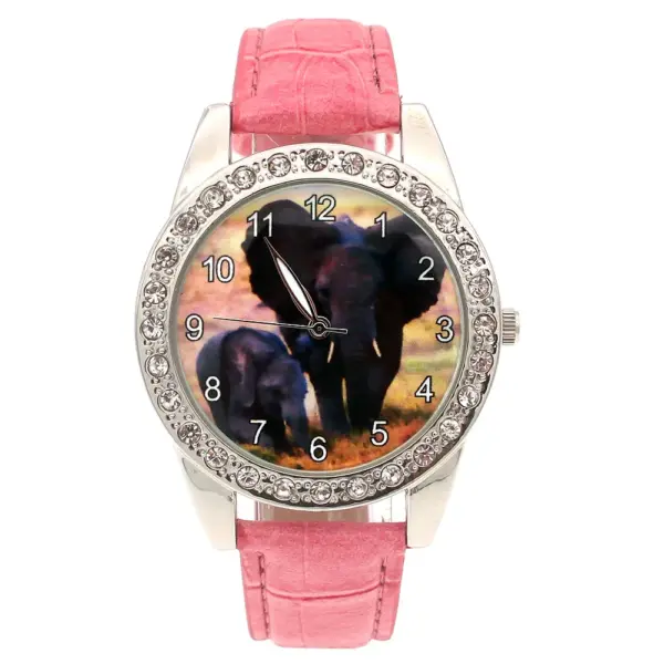 New Fashion Leather Women Men Boy Girls Watches Wristwatch Elephant Ladies Bracelet Female Round Clock Quartz Watch Children