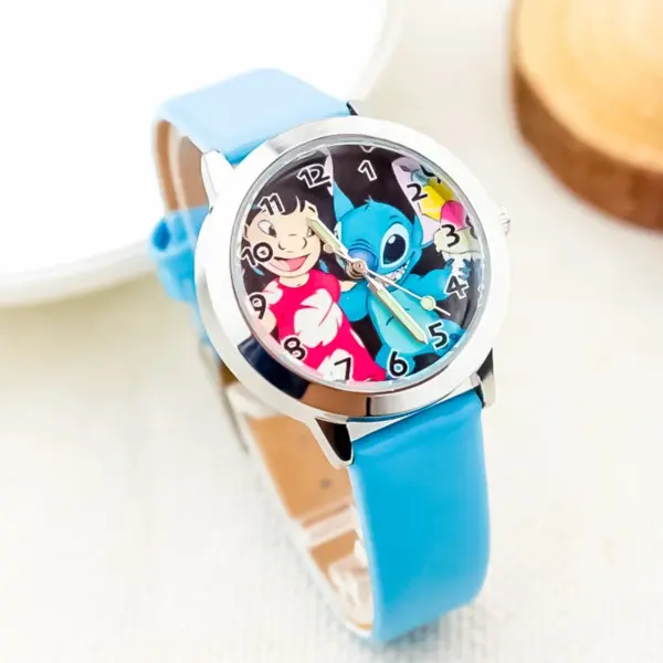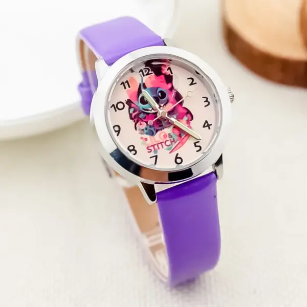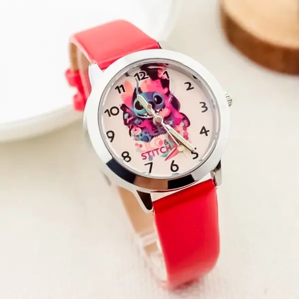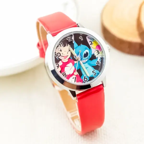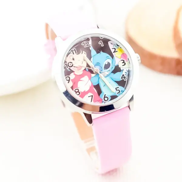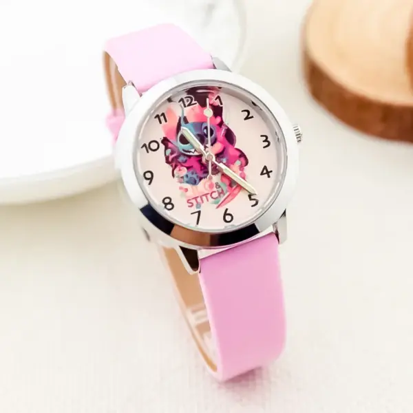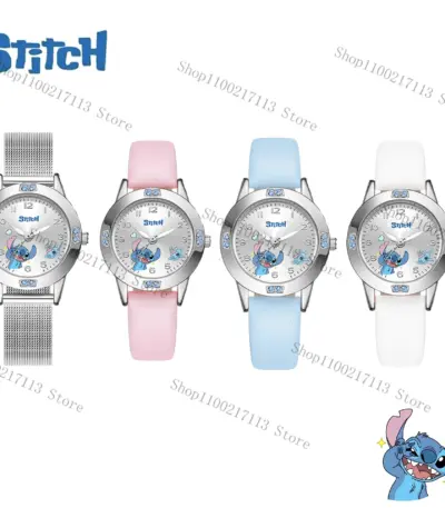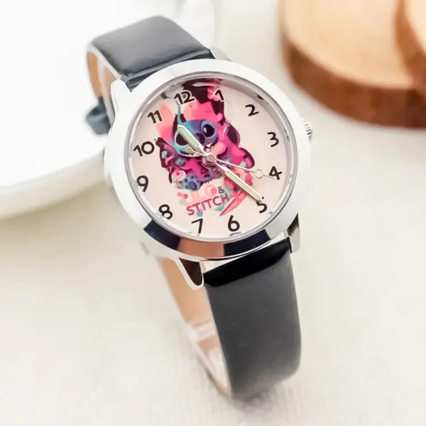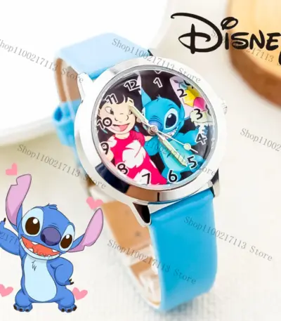New Disney Stitch Children’s Watch Hands Luminous PU Strap Quartz Watch Cartoon Anime Electronic Watch Boys girls birthday gifts