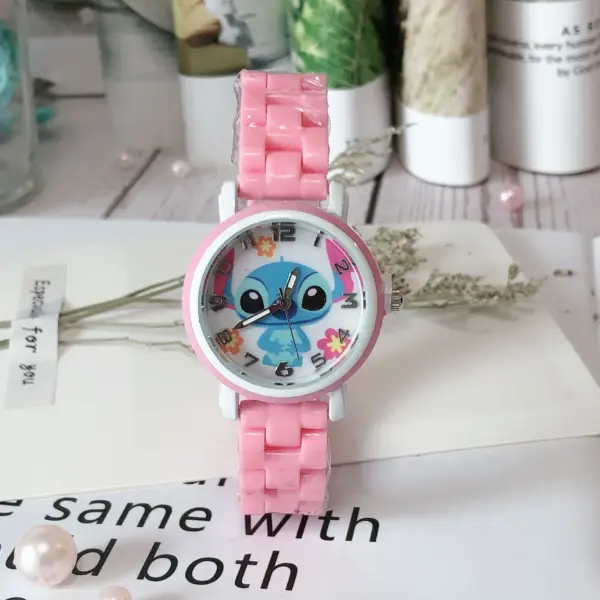 New Disney Mickey Stitch Children’s Watch Plastic Strap Pointer Luminous Quartz Watch Anime figure kids Wathes Birthday Gifts