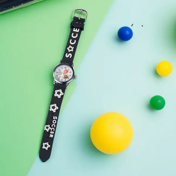 new fashion children boys girls cute cartoon football soccer watches durable electric kids watches little Free backup battery