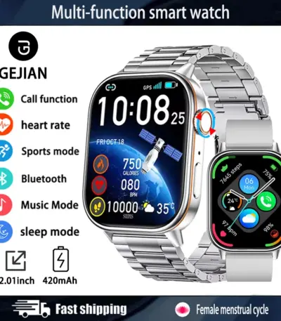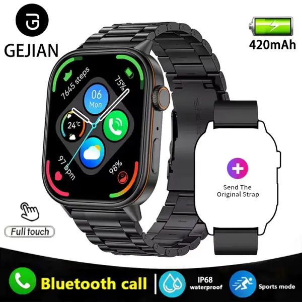 New GEJIAN Men’s Smart Watch 2.01-inch TFT HD Screen 240 * 296 Resolution Heart Rate Sleep Health Monitoring Smart Call Watch